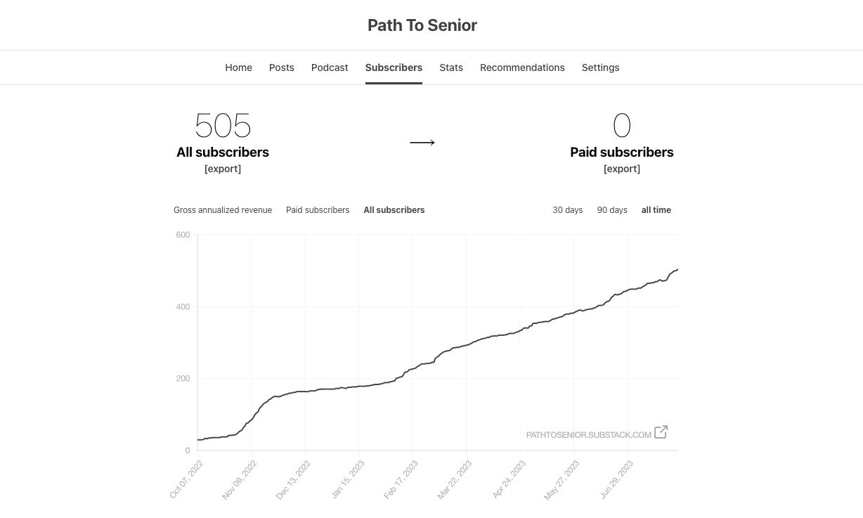 Today, I want to share that path-to-senior has reached 500 subscriptions!